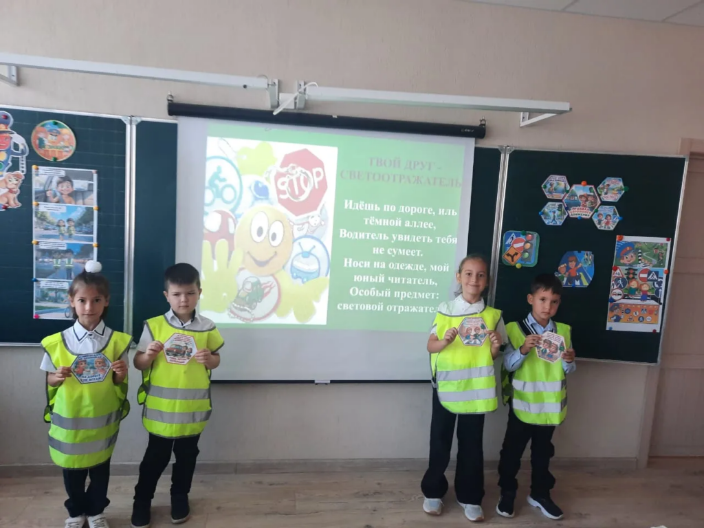 В рамках мероприятий особое внимание уделялось пропаганде использования световозвращающих элементов. По итогам мониторинга, проведённого в марте 2026 года, количество обучающихся начальной школы, имеющих световозвращатели на одежде и рюкзаках, увеличилось на 10%.